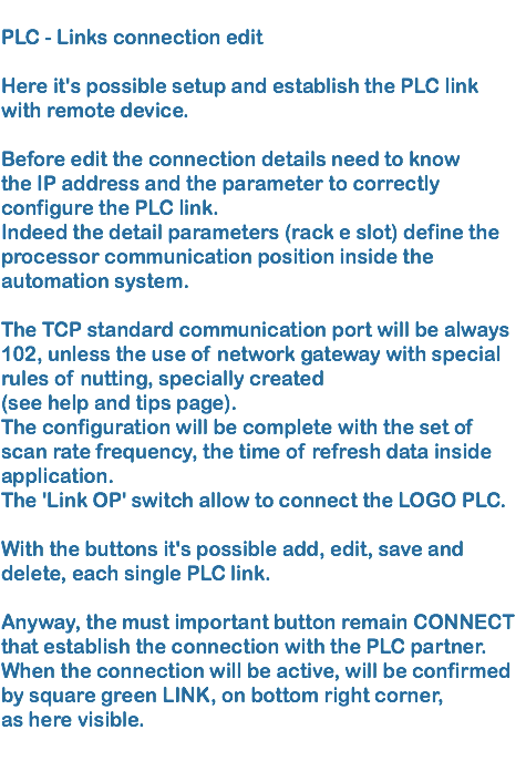 Add and edit PLC link parameters details and active the connection.